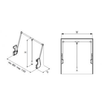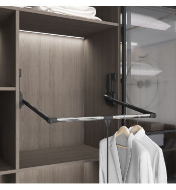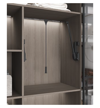 Pantograf do wysokiej zabudowy – regulowany wieszak boczny o udźwigu 15 kg, umożliwiający łatwy dostęp do ubrań w szafach.