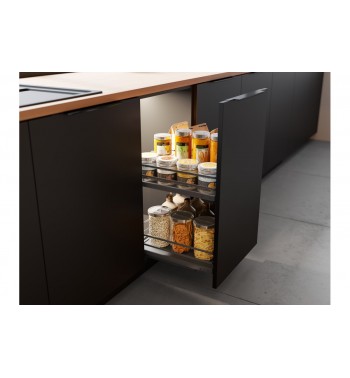 Cargo wyposażone jest w nowoczesne prowadnice dolnego montażu, które posiadają funkcję cichego domyku oraz pełnego wysuwu. Maksymalny udźwig jaki deklaruje producent wynosi 20kg.