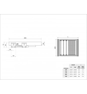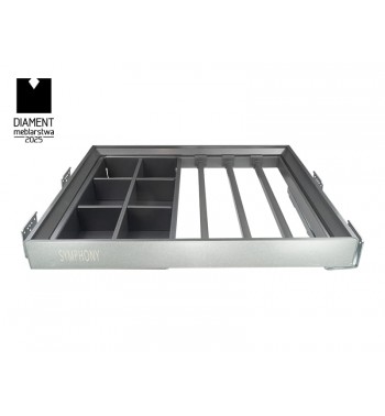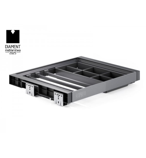 Seria SYMPHONY posiada regulację szerokości ramy w zakresie 5 cm, co umożliwia idealne dopasowanie do różnych rozmiarów szaf. Regulacja jest rozłożona równomiernie, co oznacza, że można dostosować ramę o 2,5 cm z każdej strony. Uniwersalny zaczep pozwala na szybką wymianę akcesoriów na inne z serii SYMPHONY.