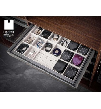 Imponujący maksymalny udźwig do 35 kg pozwala na bezpieczne przechowywanie biżuterii bez obaw o wytrzymałość konstrukcji. Testy systemu jezdnego, obejmujące 60 000 cykli, gwarantują jego niezawodne działanie przez wiele lat, nawet przy intensywnym użytkowaniu.