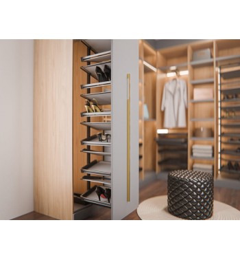 Dzięki systemowi pełnego wysuwu zyskujesz nieograniczony dostęp do każdej pary butów, bez konieczności sięgania w głąb szafy. Wystarczy jeden ruch, by cały kosz był dobrze widoczny i gotowy do użycia.