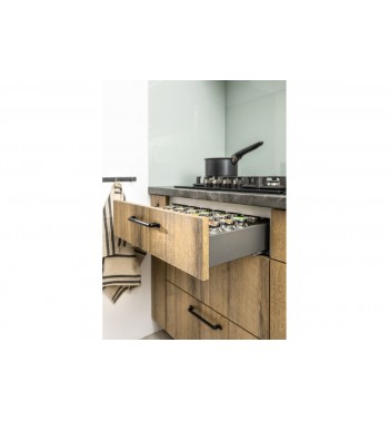 Zastosowanie w szufladach AXIS PRO systemu cichego domyku zapewnia ergonomię i komfort o każdej porze dnia. Ciche domykanie znacznie podnosi jakość użytkowania szuflad i codzienną pracę w kuchni.