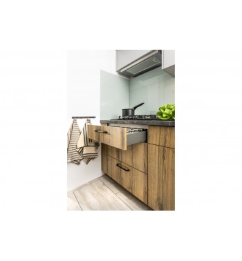 Cienki płaszcz boczny o szerokości zaledwie 14 mm nadaje szufladzie prosty i nowoczesny wygląd, a wykończenie systemu w bieli lub antracycie umożliwia stworzenie wielu niecodziennych aranżacji. Wąski bok zapewnia również więcej miejsca w szufladzie i dodaje jej lekkości.