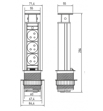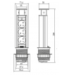 Gniazdo wyposażone jest w elegancką pokrywę w kolorze srebrnym, która dobrze komponuje się z nowoczesnymi meblami biurowymi i kuchennymi. Kompaktowa konstrukcja sprawia, że urządzenie można zamontować nawet w niewielkich blatach.